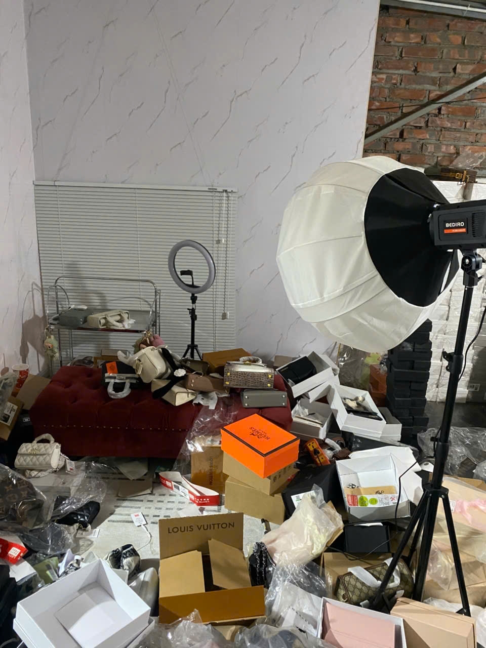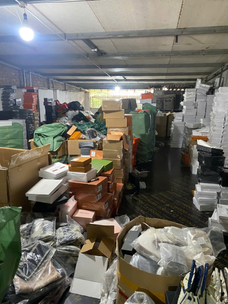 Tại thời điểm kiểm tra hàng hóa tại cơ sở là 5.215 sản phẩm gồm các sản phẩm là phụ kiện thời trang (túi xách, ví) có nhãn và hình của các thương hiệu YSL, LOUIS VUITTON, GUCCI, CHANEL, JACQUEMUS, MARC JACOBS, COACH, DIOR, CELINE, MCM, PRADA, MIUMIU, PEDRO, MLB, HERMER, CHARLES & KEITH, CHARLES & KEITH. Toàn bộ số hàng hóa nêu trên có nhãn hiệu được gắn liền trên sản phẩm không thể tách rời, hàng hóa có dấu hiệu giả mạo các nhãn hiệu đang được đăng ký và bảo hộ tại Việt Nam. Chủ hàng không xuất trình được hóa đơn chứng từ kèm theo theo quy định. Tổng trị giá hàng hóa trên 700 triệu đồng.