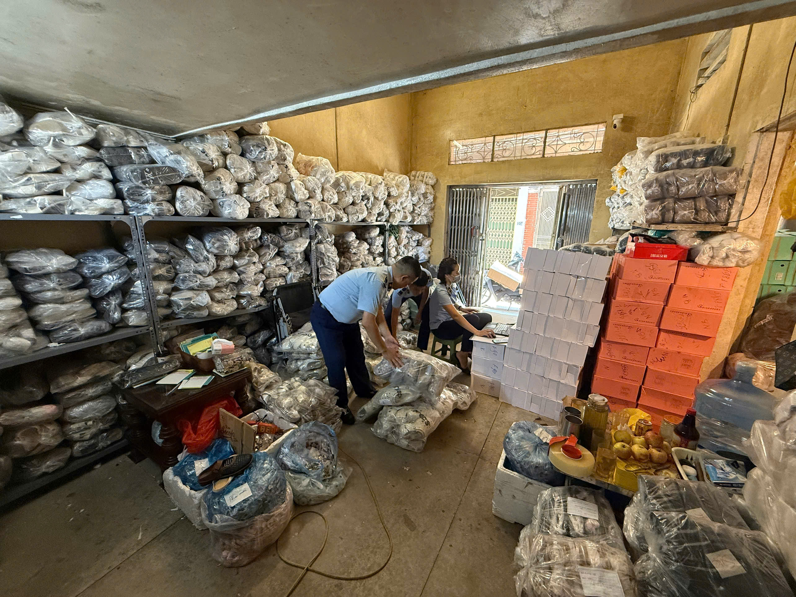 Đội đã lập biên bản, tiến hành tạm giữ và niêm phong toàn bộ số hàng hóa nói trên để đại diện nhãn hiệu Adidas, Crocs tại Việt Nam giám định, xác minh nguồn gốc, làm cơ sở xử lý theo quy định của pháp luật.